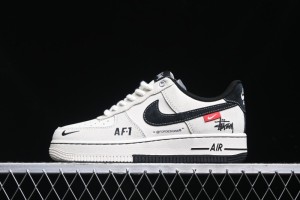 - Product Name: Nike Air Force 1 '07 Low Stussy Collaboration - AF1 Light Grey Red Tag Low-Top Casual Sneakers SJ6698-009