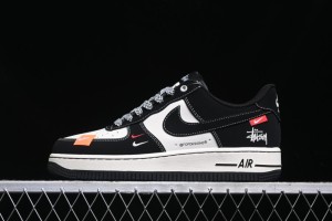 - Product Name: Nike Air Force 1 '07 Low Stussy Collaboration - Black White Double Swoosh Red Tag Low-Top Casual Sneakers - SJ6698-012