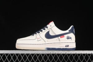 - Product Name: Nike Air Force 1 '07 Low Stussy Collaboration Dual-Tone Blue Red Logo Casual Sneakers - HH7518-072