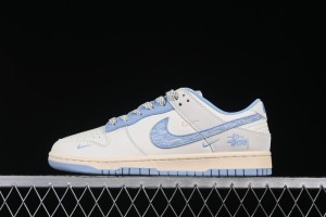 Nike SB Dunk Low Stussy Collaboration Light Blue Shadow Swoosh Anniversary Custom Low-Top Casual Skate Shoes - XS6089-503