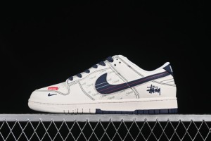 Home>SHOES>NIKE>Nike SB Dunk>Nike SB Dunk Low>Nike SB Dunk Low Stussy Collaboration White Blue Red Stripe Swoosh Anniversary Custom Low-Top Casual Skate Shoes - XS6089-532