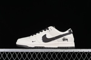 - Product Name: Stussy x Nike SB Dunk Low Anniversary Customized Casual Sneakers in Off-White Black Swoosh - DQ1098-378